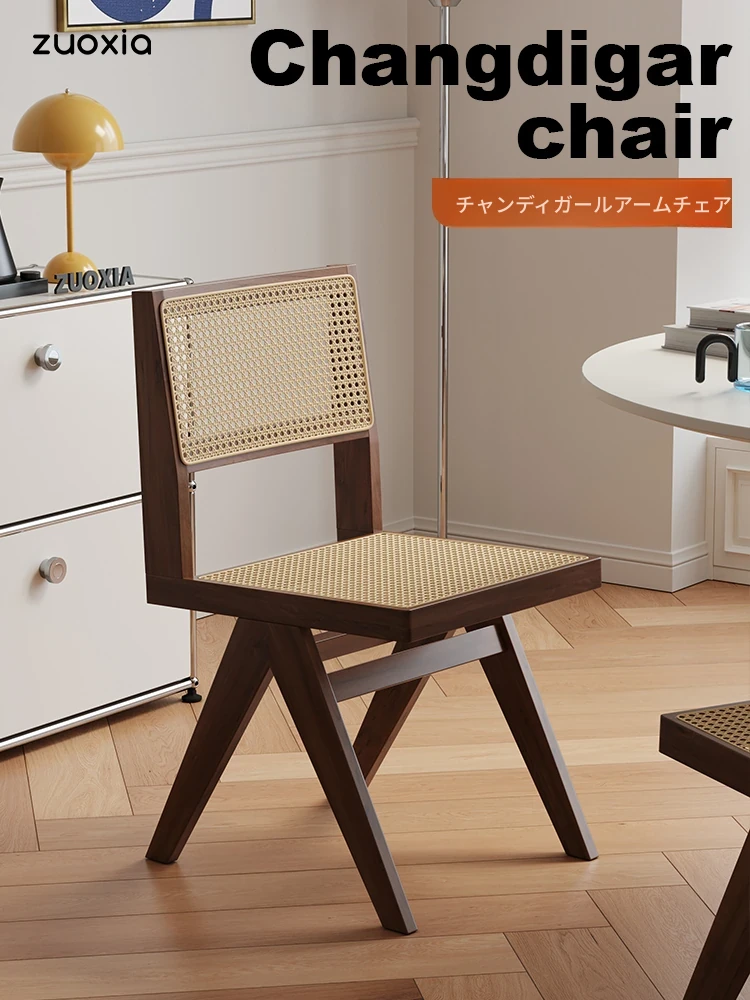 北欧風ヴィンテージ実木ダイニングチェア|家庭用ラタンチェア|チャンディガールデザイン|クリエイティブな背もたれ付き藤編み椅子|おしゃれで快適な空間を演出!