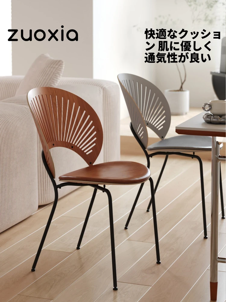 左下の実木シェルチェア - おしゃれでレトロなインスピレーションのダイニングチェア。シンプルなデザインで、居心地の良いひなたぼっこやリラックスタイムに最適!家のインテリアにぴったりなヴィンテージスタイルのリクライニングチェアです。