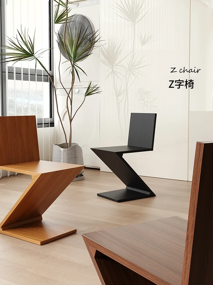 北欧スタイルの無垢材ダイニングチェア - デザイナーズミニマリスト、モダンなインテリアにぴったりな中古スタイルの背もたれ付きZ字チェア!おしゃれで快適な食卓に最適。