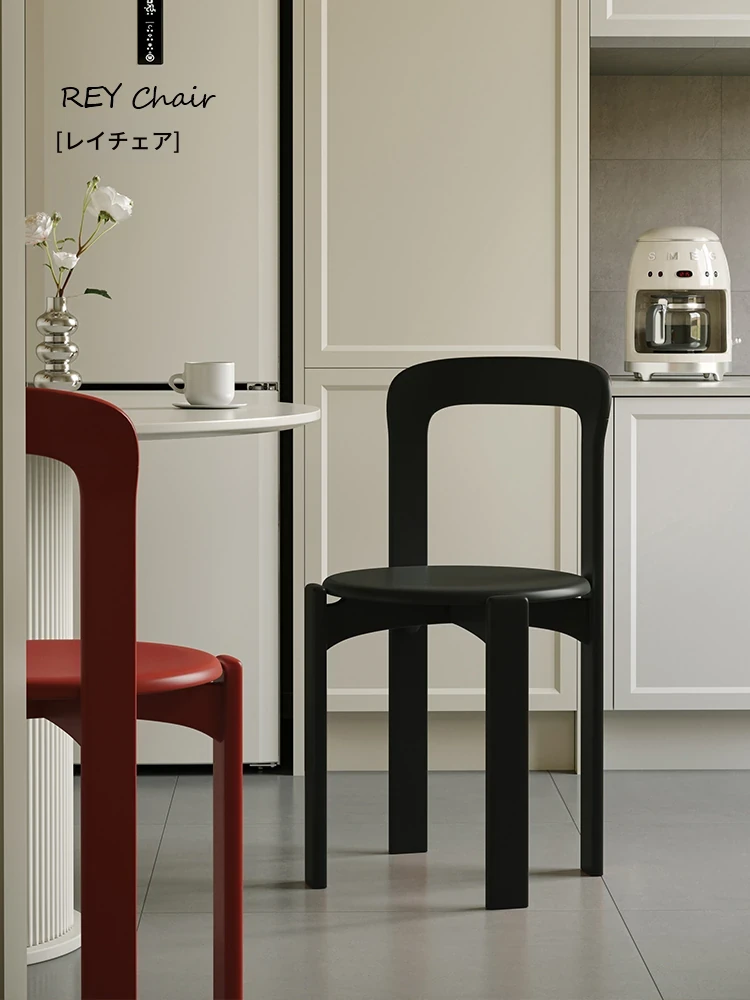 左下Rey椅 中古実木デザイナーダイニングチェア 2025新作 北欧スタイル シンプルな家庭用レストラン背もたれチェア おしゃれで快適な空間を演出!