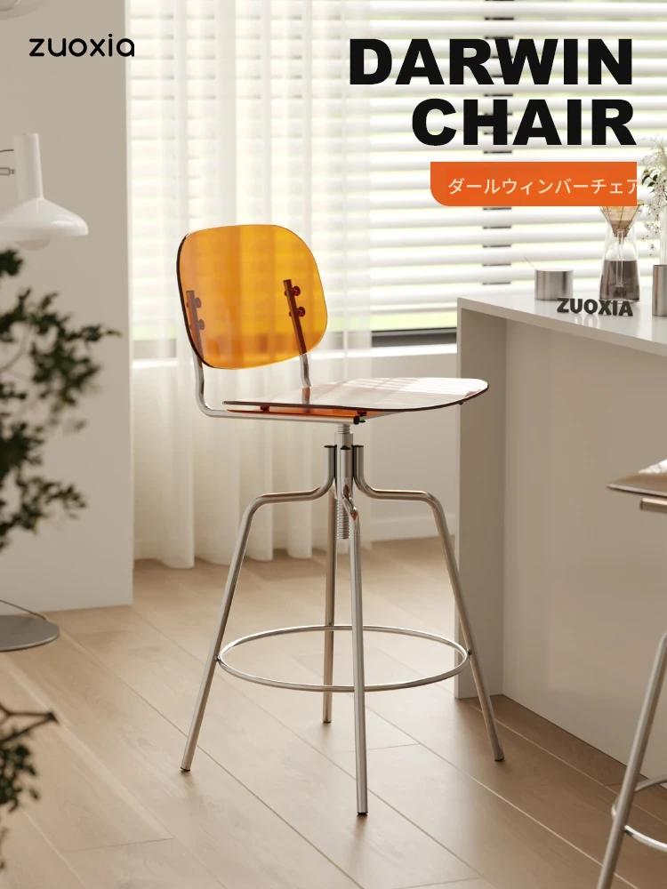 レトロな北欧スタイルの昇降式バースツール - デザイナーが手掛けたアイランドカウンター用、家庭用にも最適な高脚椅子!快適な座り心地で、おしゃれな空間を演出します。