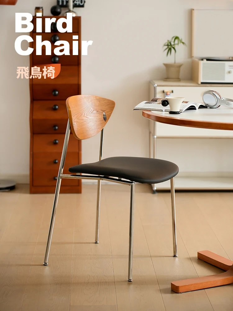 北欧風レトロデザイン!ミニマリスト向けの実木製ダイニングチェア。小型住宅に最適な中古デザイナーのステンレス製バックレスト付き椅子で、スタイリッシュな空間を演出します。