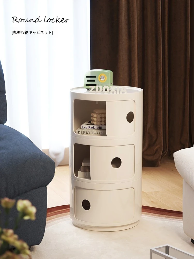 おしゃれなクリーム風スナック収納キャビネット!多層スタッキング可能で、寝室やベッドサイドにぴったり。便利な丸型デザインで、収納力抜群!あなたのスペースをおしゃれに彩ります。