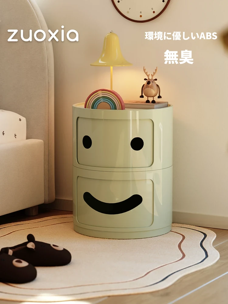 左下円形スマイルベッドサイドテーブル|インスタ映えするミニ子供用クリエイティブキャビネット|リビングにぴったりな小型収納ボックス!おしゃれでキュートなデザインで、お部屋を明るく彩ります!