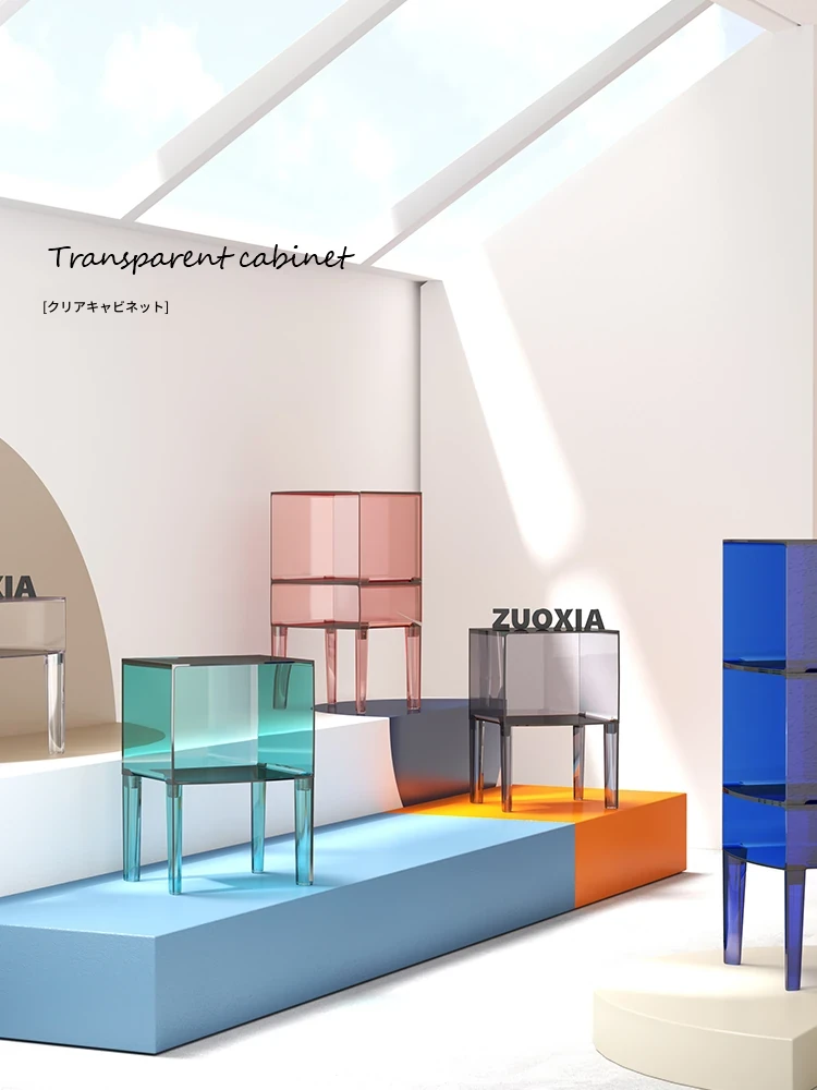 アクリルベッドサイドテーブル モダンでシンプルなデザイン 人気の透明ソファサイドキャビネット 小型住宅向けクリーミー風収納キャビネット 寝室にぴったり!