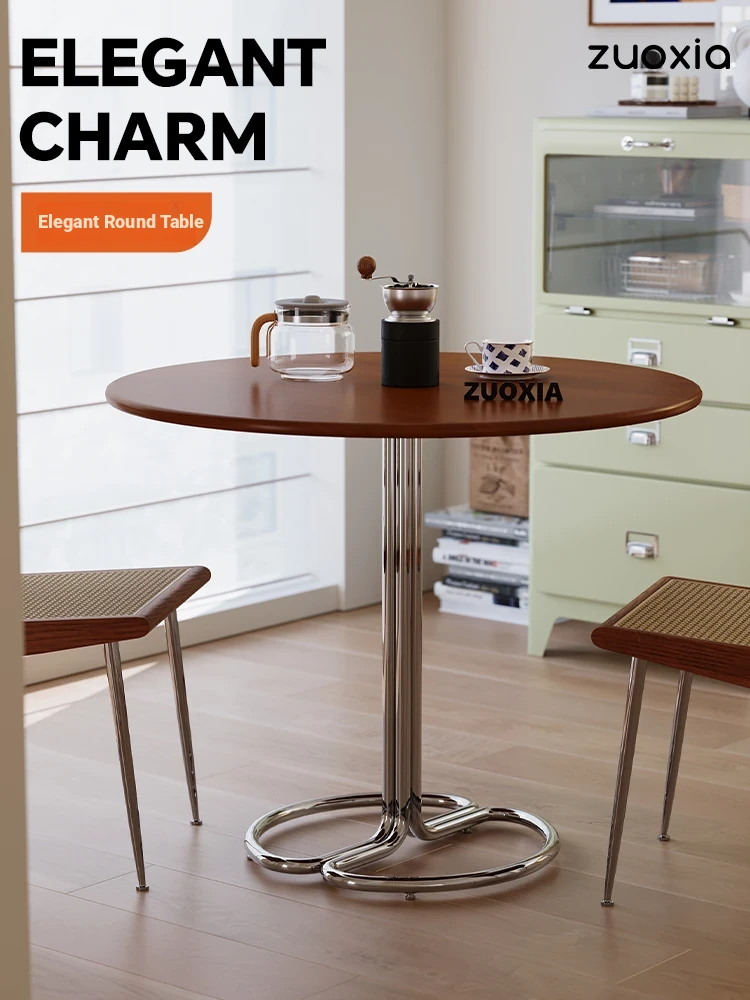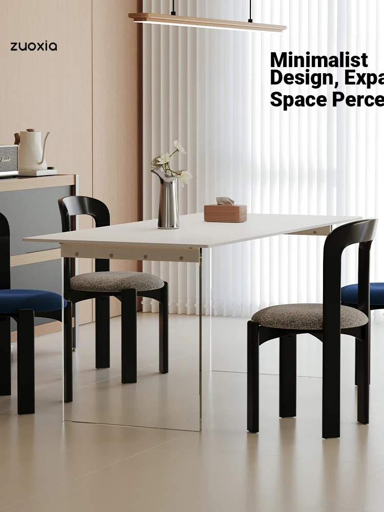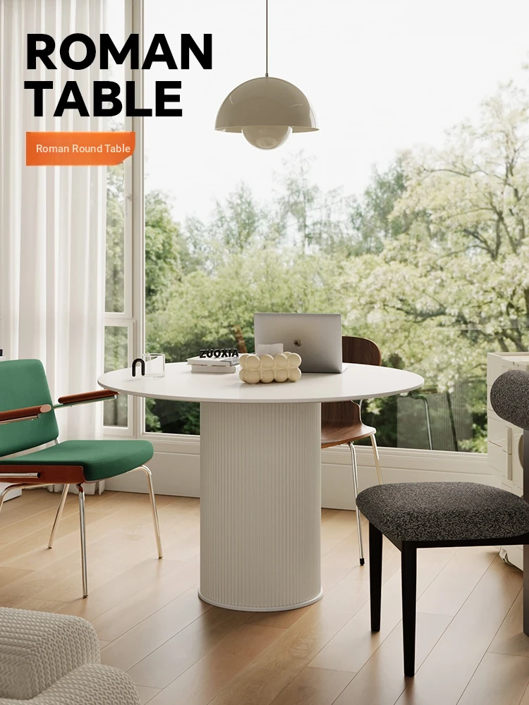 Modern Minimalist Floating Round Dining Table with Rock Plate for Small Spaces – Stylish French-Inspired Design Perfect for Home Use