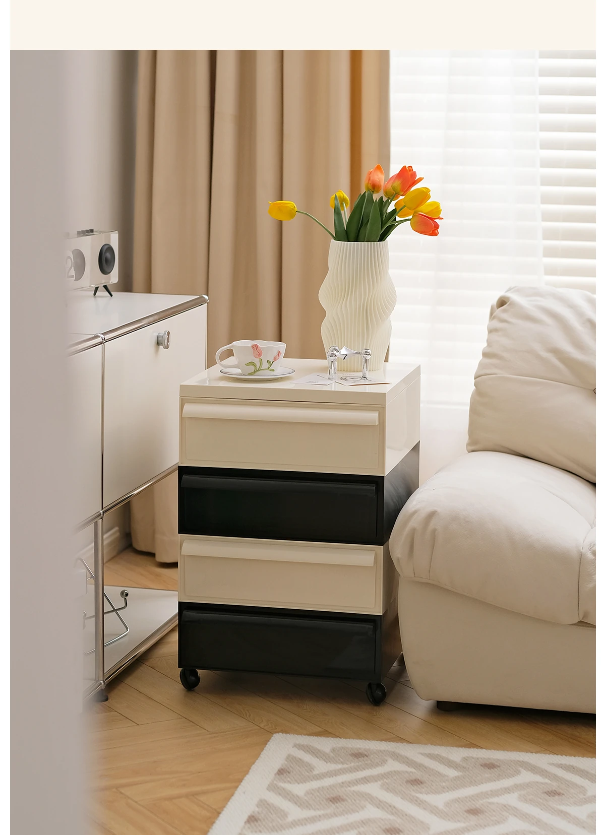 北欧風スタイルの左下ベッドサイドキャビネット - 侘寂の美しさを感じるインテリア!人気のインスタ映え収納ボックス、シンプルでモダンなデザインのミニキャビネット。あなたの部屋にぴったりのアイテムです!