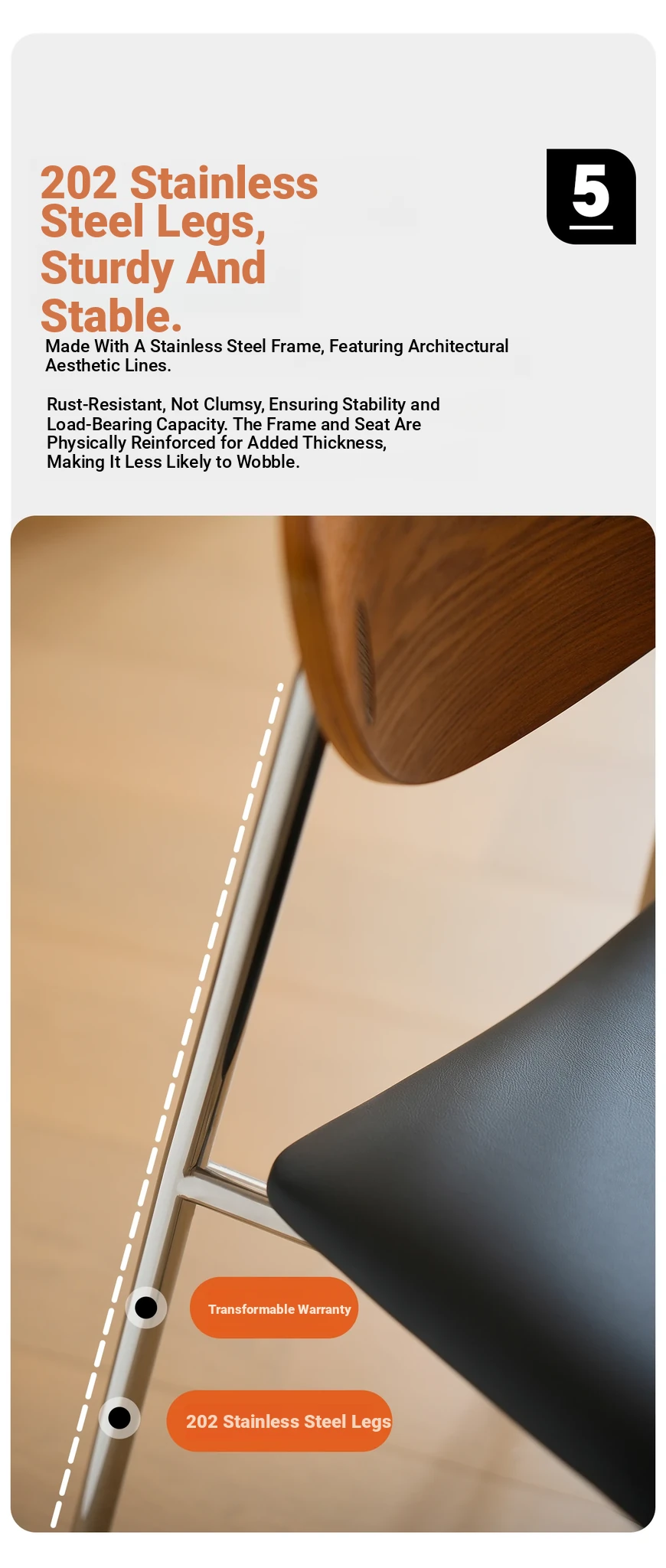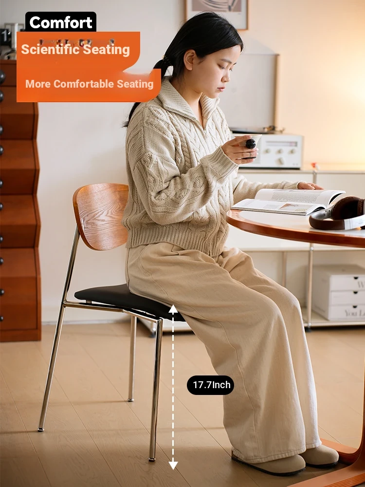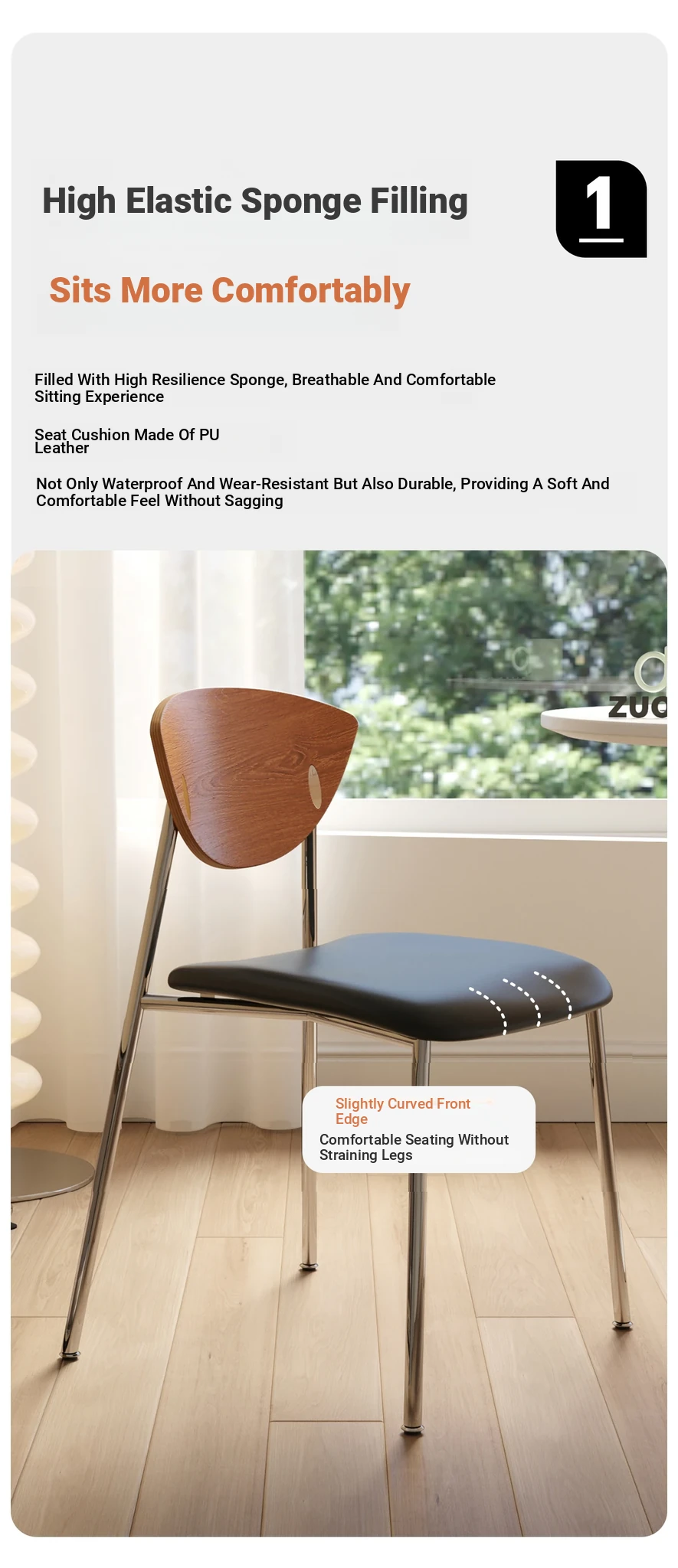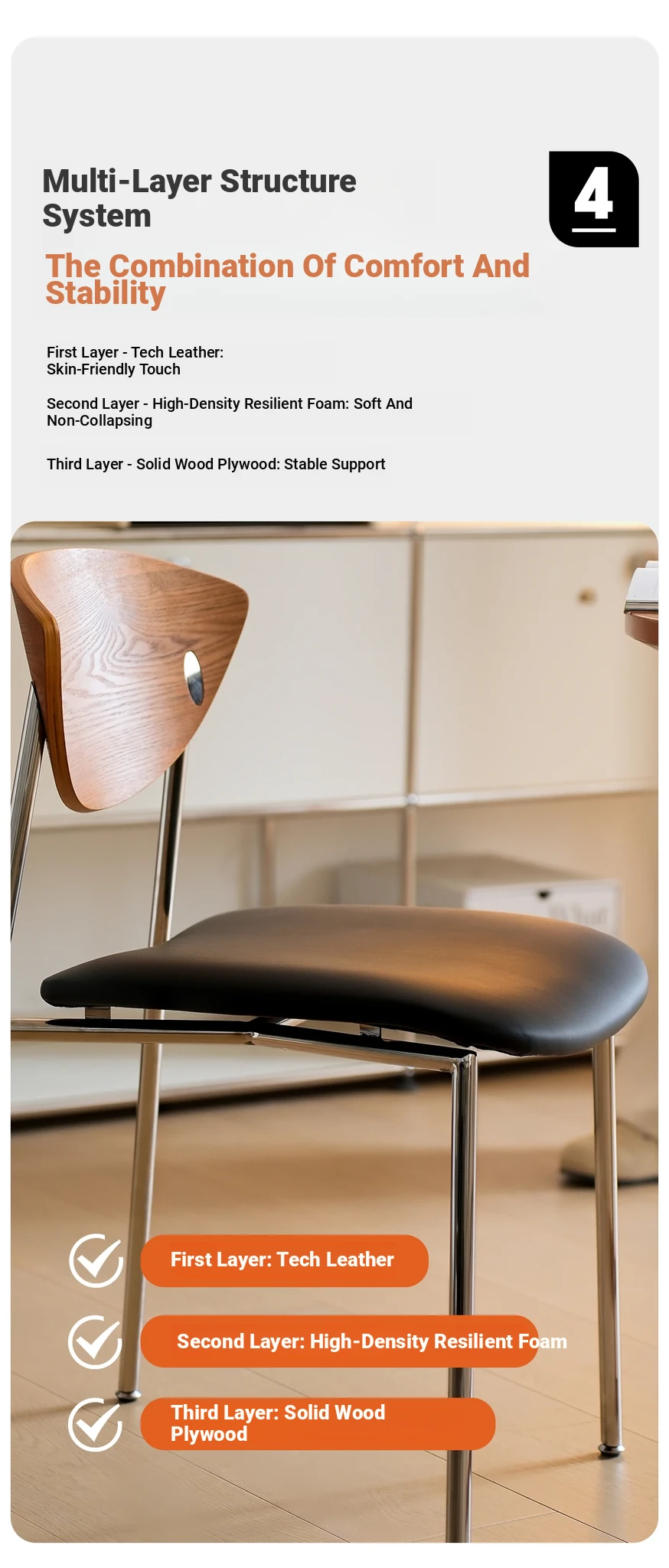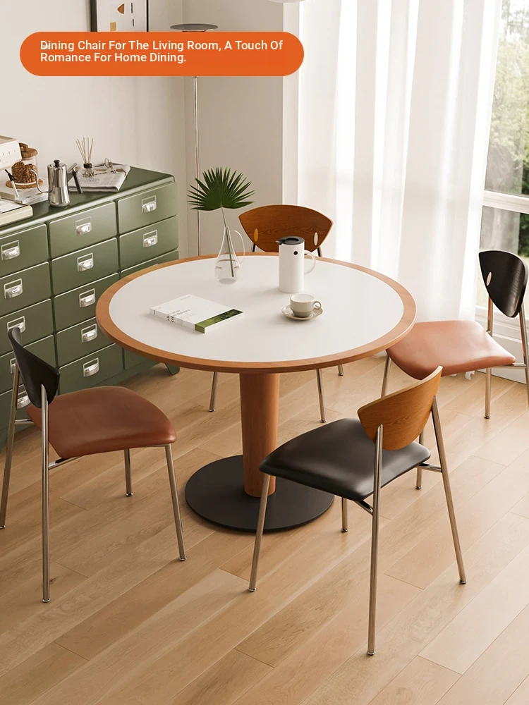 Vintage Scandinavian Designer Dining Chair - Mid-Century Modern Solid Wood with Stainless Steel Backrest for Home Use - Perfect for Your Dining Room!