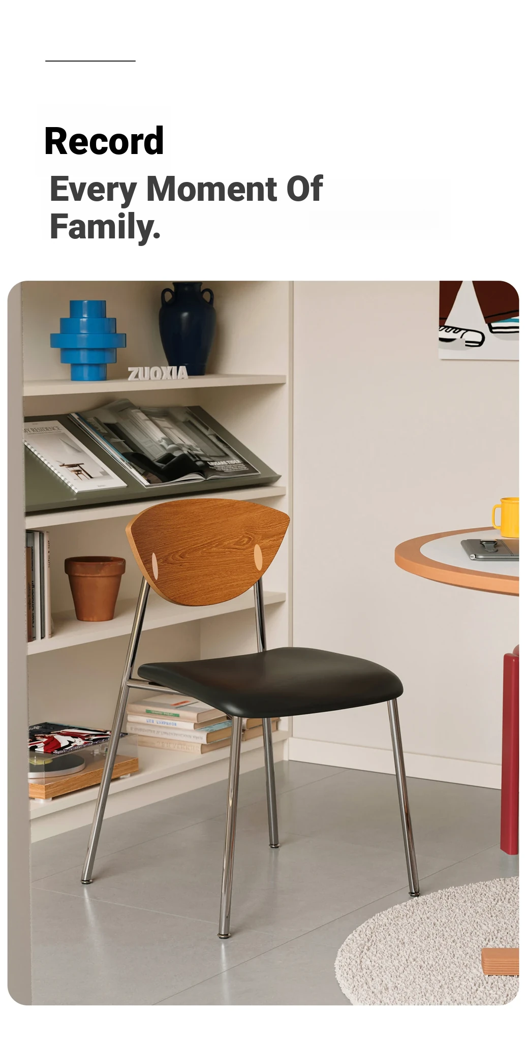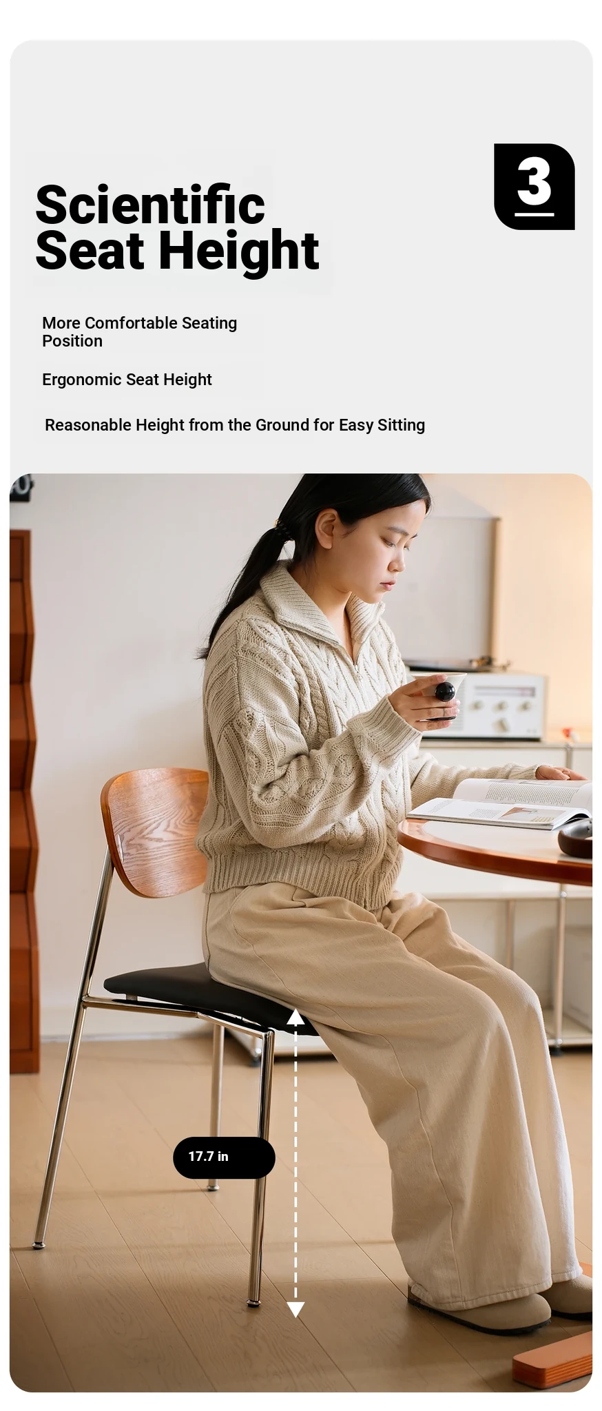 [Carbon Steel Plated Legs] Walnut Color Backrest-Black Cushion