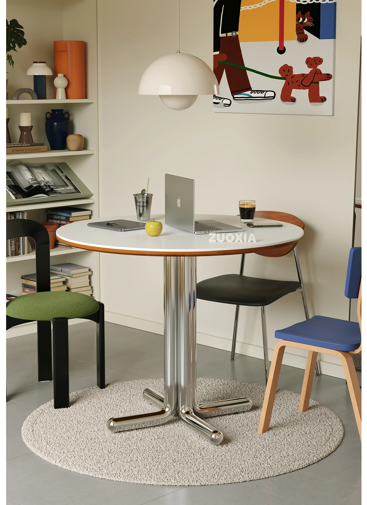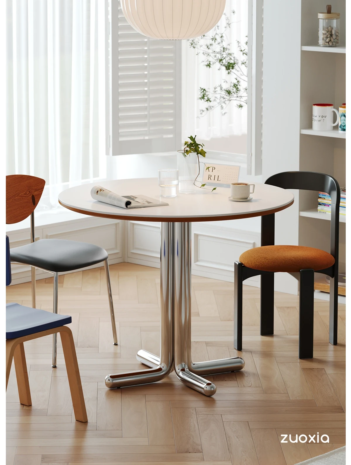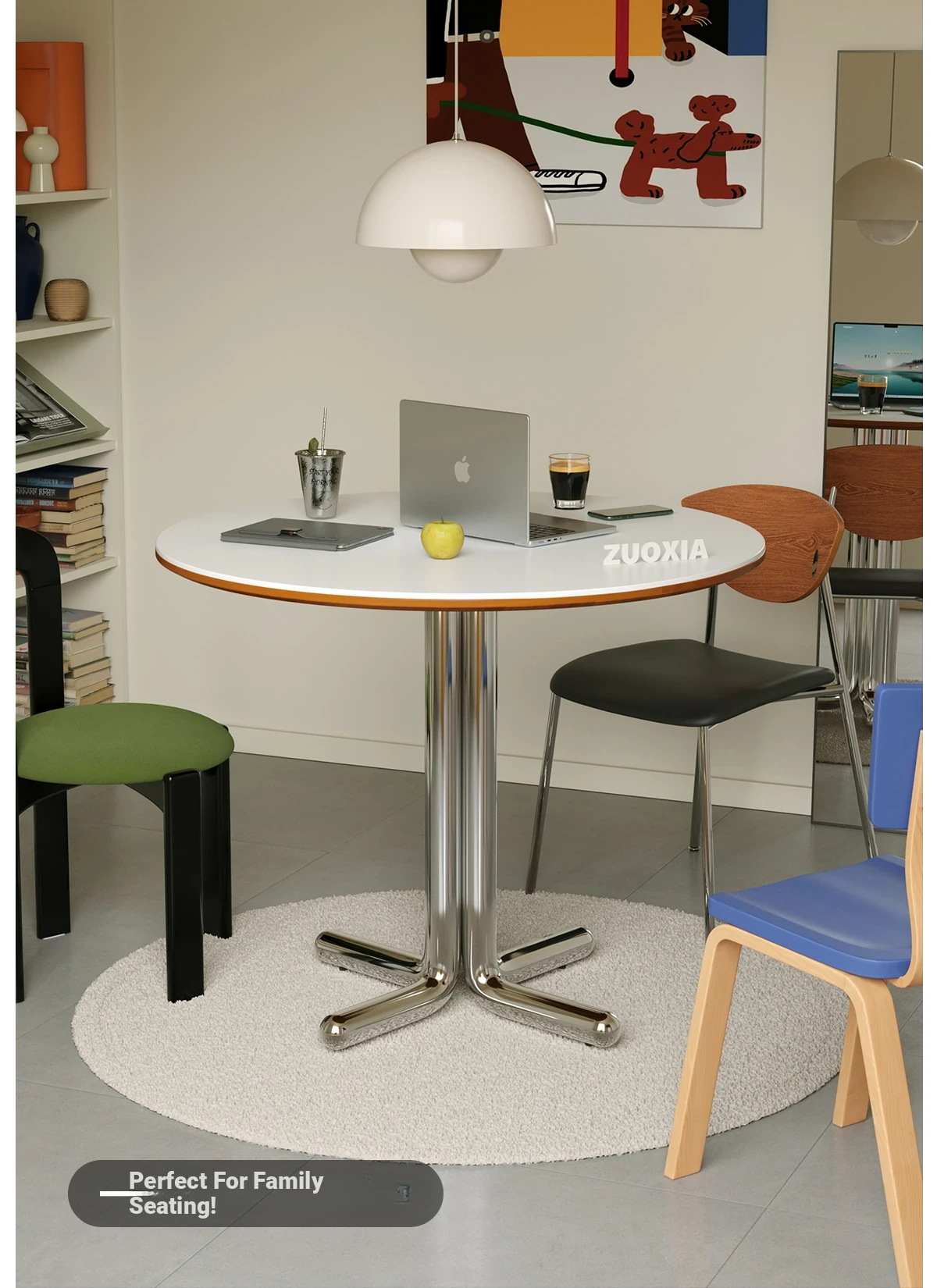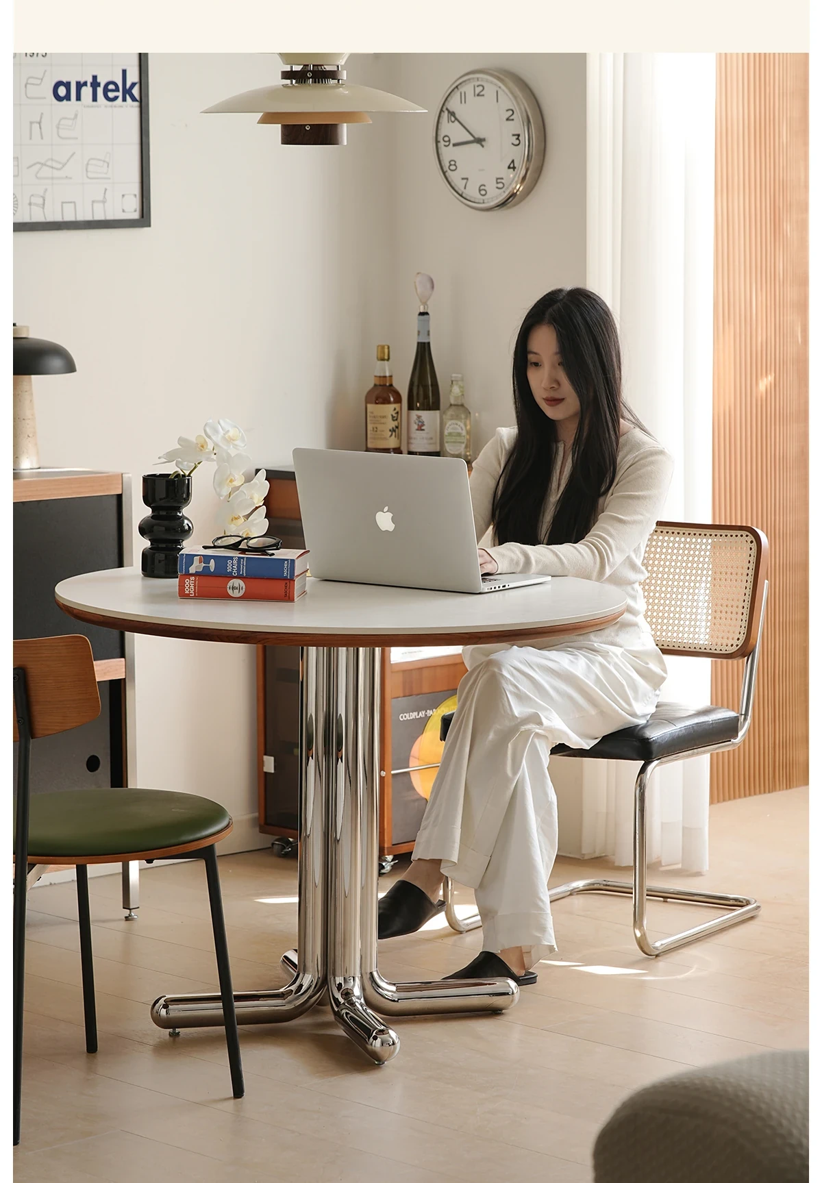 左下安定感抜群の中華風岩板テーブル 家庭用ラウンドデザイン テーブル デザイナーズスタイル モダンレストランにぴったりなシンプルなダイニングテーブル