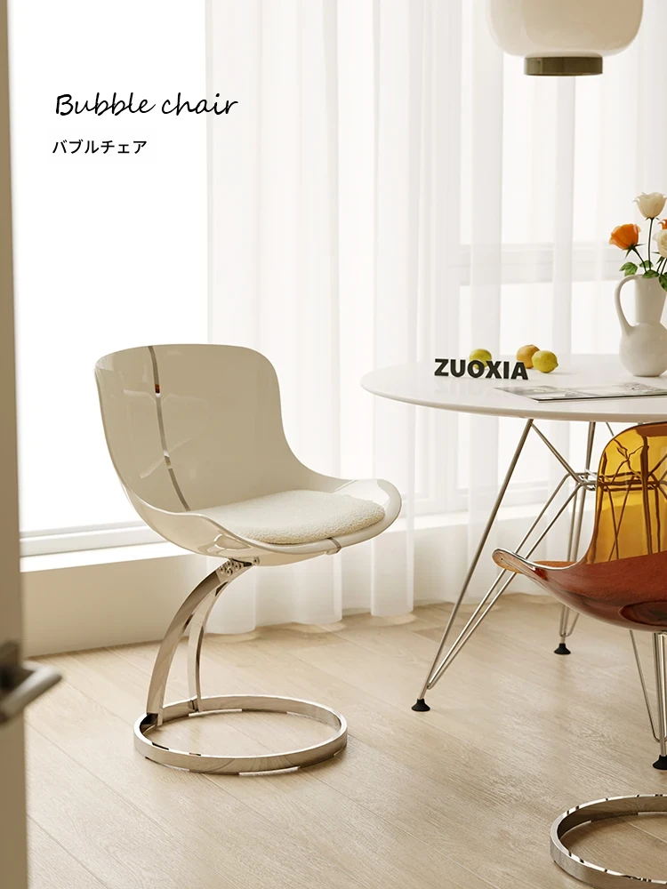 左下クリーム風 家庭用アクリルダイニングチェア デザイナーの創造的なレストラン用背もたれ椅子 人気の透明メイクアップチェア