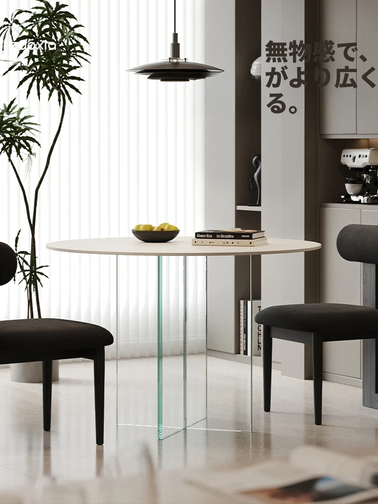 左下浮遊型モダンシンプル円形ダイニングテーブル - おしゃれでコンパクトな家用、人気のスラブデザイン。小さなスペースにもぴったりなフレンチスタイルの円形テーブル。食事をより特別なひとときに!